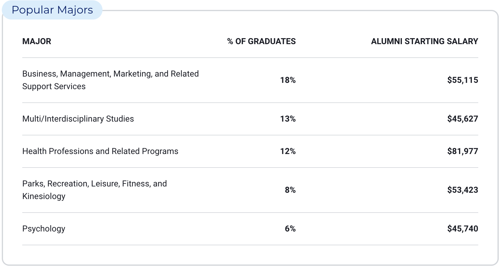 Popular Majors Courses